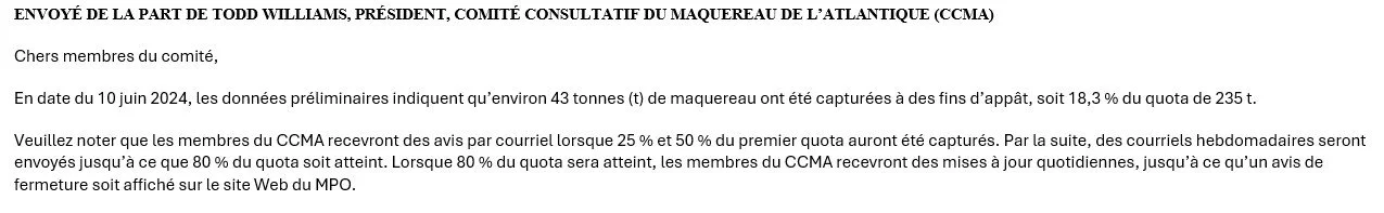 juin 11, 2024 Communications UPM MISE À JOUR SUR LES APPÂTS POUR LE COMITÉ CONSULTATIF DU MAQUEREAU DE L’ATLANTIQUE juin 11, 2024 Communications UPM Communications UPM