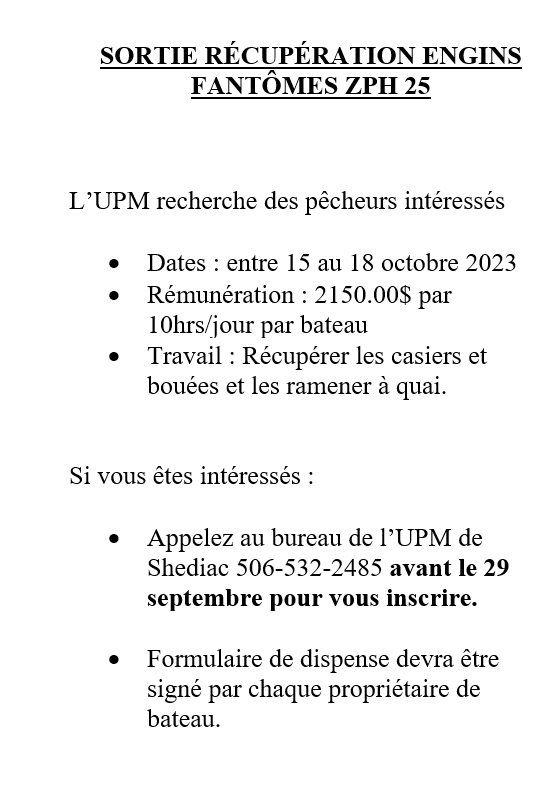 septembre 20, 2023 Communications UPM Sortie Récupération Engins Fantômes ZPH25 septembre 20, 2023 Communications UPM Communications UPM